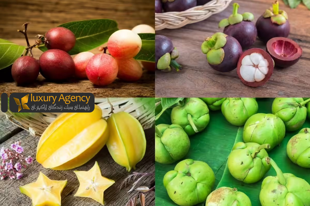 در کنار آناناس، برخی میوه های استوایی دیگر نیز توانسته اند جای خود را در فهرست میوه های لاکچری باز کنند. برای مثال انبه های Pink Elephant و دیگر نژادهای بسیار بزرگ و کره ای با هسته کوچک، که در ویتنام و تایلند کشت می شوند، به دلیل بافت خامه ای، عطر قوی و ظاهر بی نقص با قیمت های چندین برابر انبه های عادی به فروش می رسند. میوه هایی مثل چریمویا (که گاهی به آن «میوه بستنی» می گویند)، فِیجوا، پَشن فروت و انواع لیچی و رامبوتان نیز اگرچه همیشه در دسته فوق لاکچری قرار نمی گیرند، اما در بازارهای اروپا و آمریکا به عنوان میوه های خاص و نسبتا گران شناخته می شوند. بسیاری از این میوه ها علاوه بر طعم جذاب، سرشار از آنتی اکسیدان ها، ویتامین C، فیبر و ترکیبات گیاهی مفید هستند و در نشریات تغذیه ای، روی نقش آن ها در الگوهای غذایی متنوع و سالم تأکید شده است. برخی شرکت ها و فروشگاه های بزرگ نیز این میوه ها را در قالب «باکس های میوه لوکس» به مشتریان عرضه می کنند که ترکیبی از تجربه طعمی متفاوت و حس اشرافیت غذایی است (نمونه هایی از این بسته ها را می توان در وب سایت هایی مانند Melissa’s Produce مشاهده کرد که سبدهای میوه لوکس را معرفی می کنند؛ برای مثال گزارش آن ها درباره میوه های لوکس، از جمله تاج ملون ژاپنی و آناناس های خاص، قابل توجه است: Top 10 Luxury Fruits).
